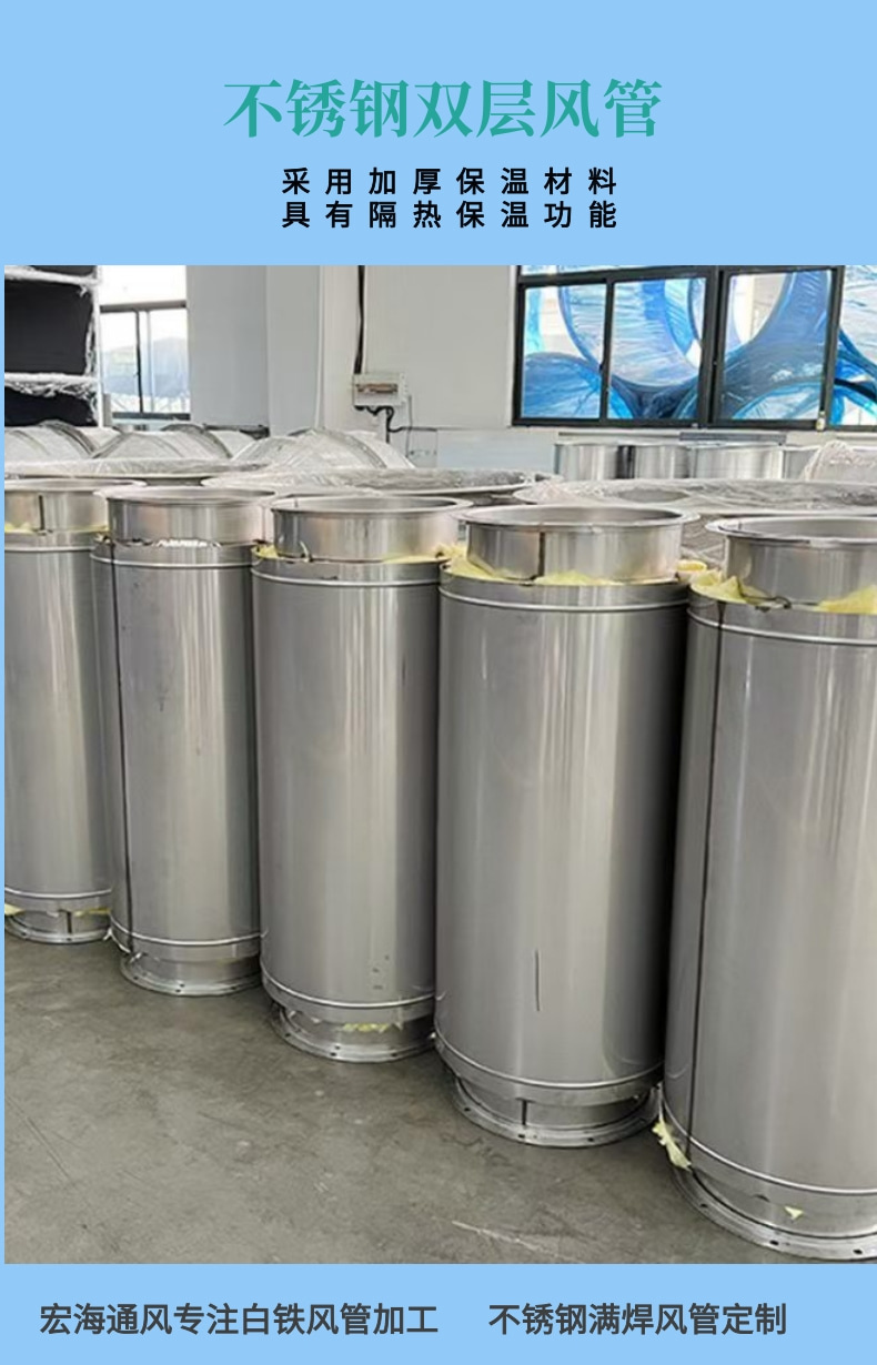 宏海通风设备供应不锈钢双层风管加工 发电机排烟囱管道安装