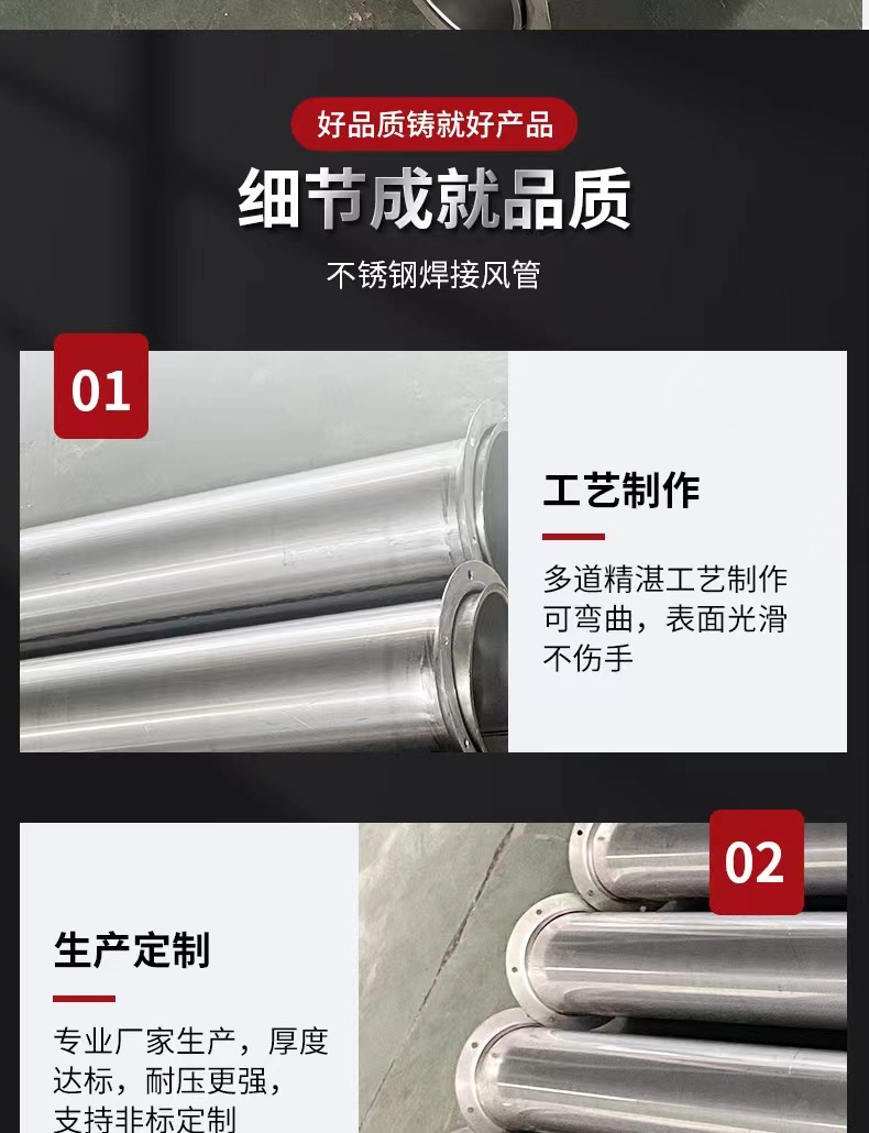 宏海风管加工厂供应304不锈钢满焊圆管 除尘排烟不锈钢风管定制